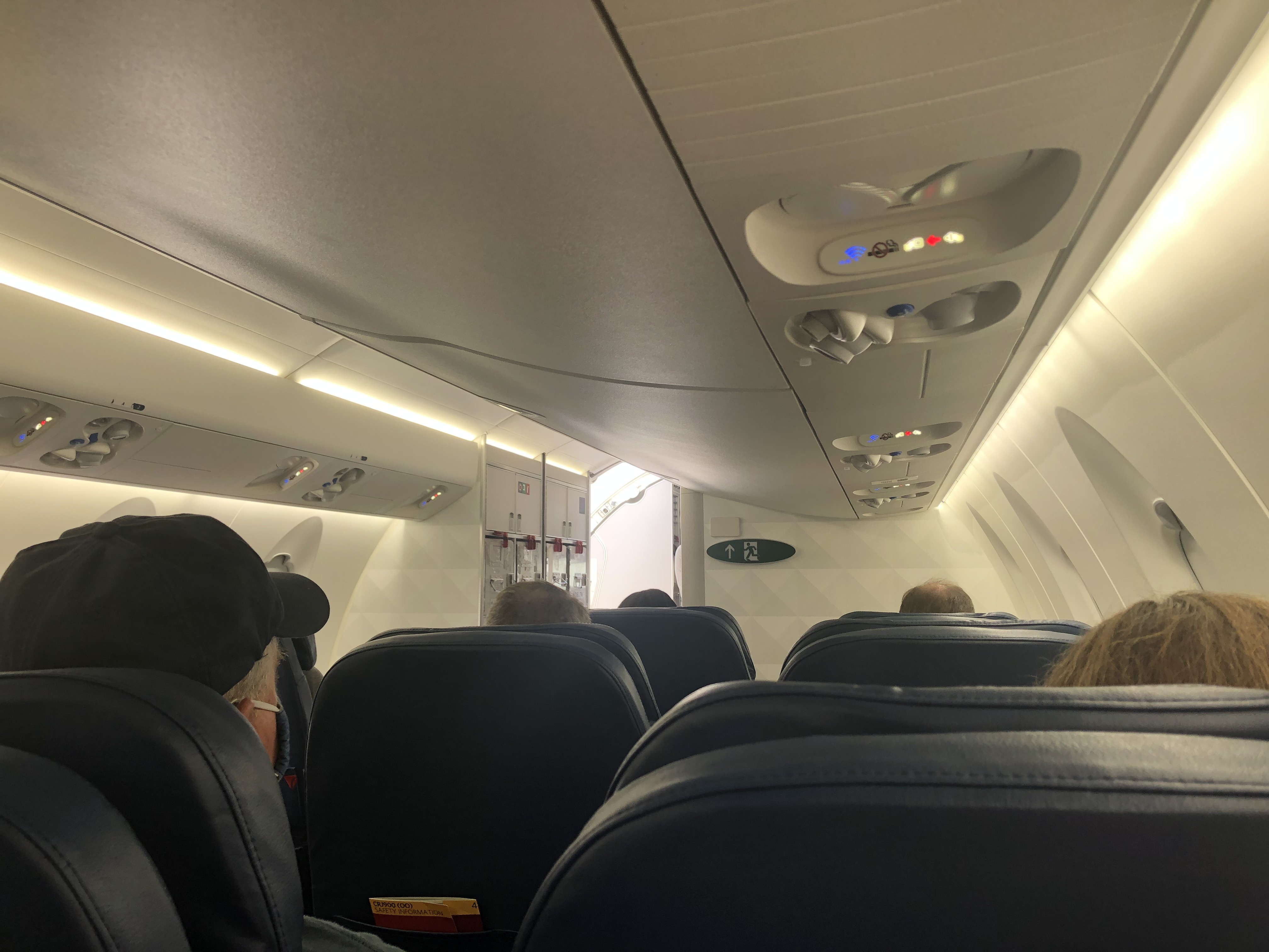 First class "meal" on the way to Charlotte: kettle potato chips, gummy bears, crackers, smoked Gouda cheese, meat stick, Kind bar, Oreo cookies, TicTacs (not pictured)