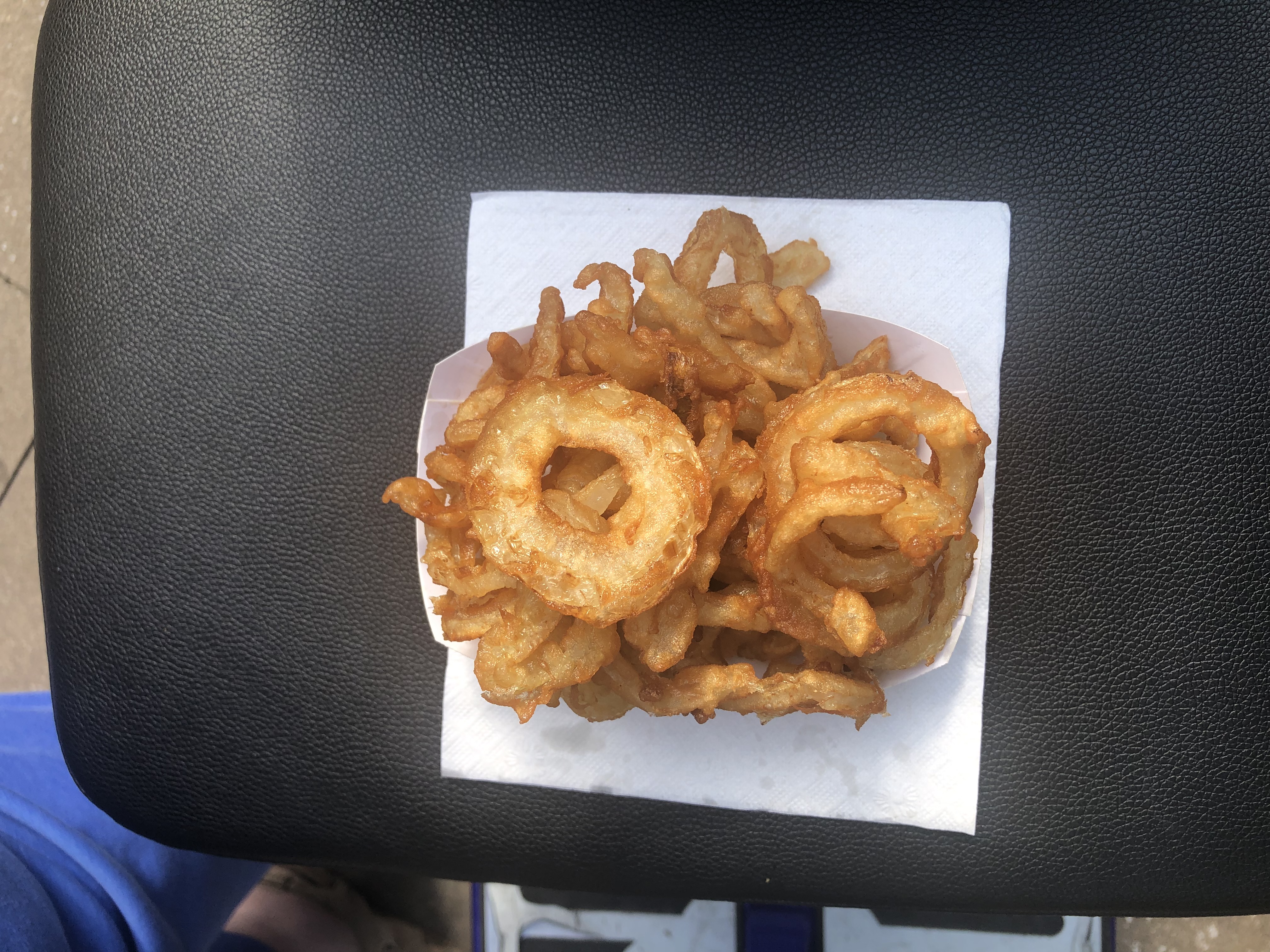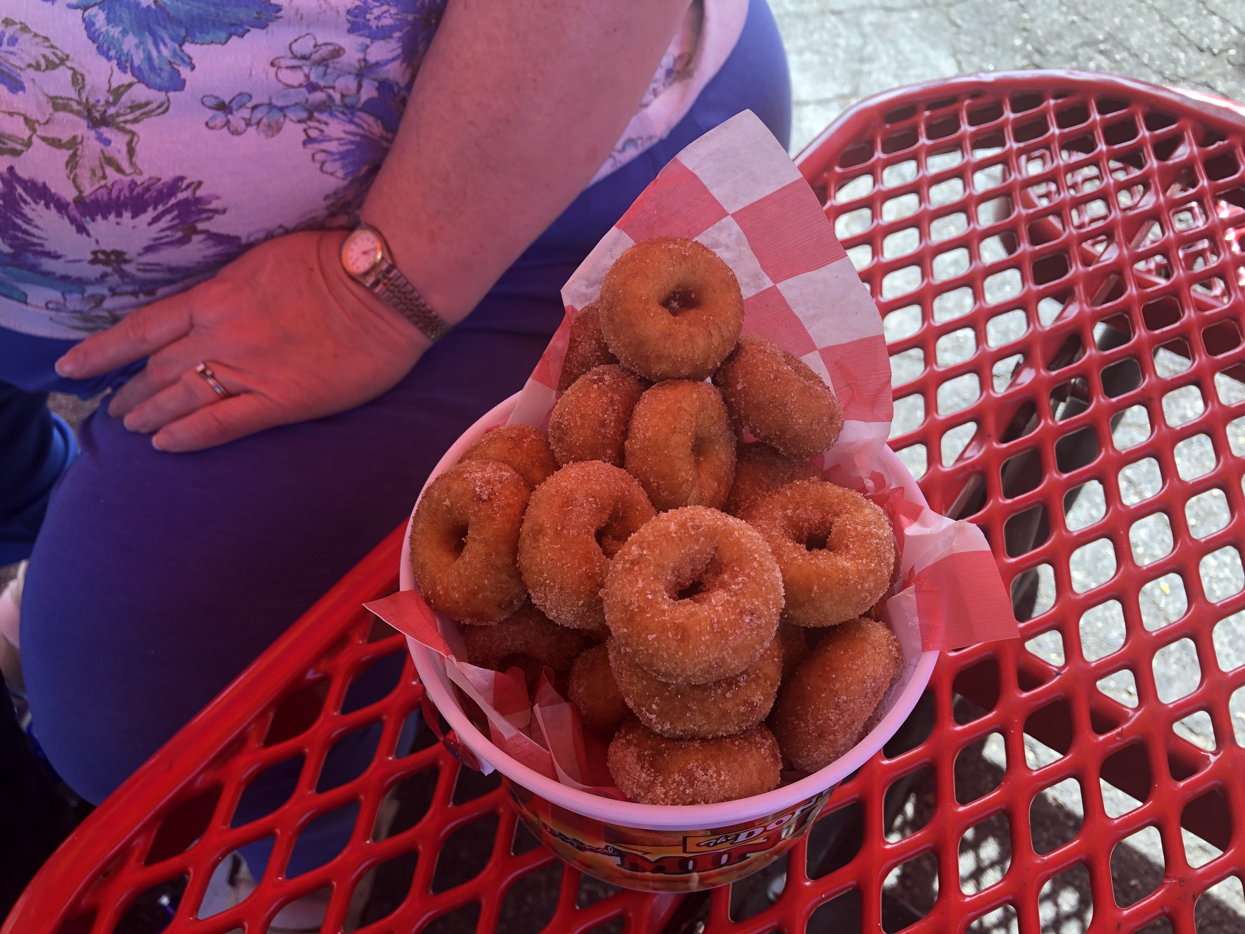 Food booths at the fair are inspected multiple times over the duration. For the first time ever, I saw a health inspector. I'm wearing a mask and my eyes light up and I motion to my mother, trying to not draw too much attention and quickly snapped this pic before the inspector left and got lost in the crowd.