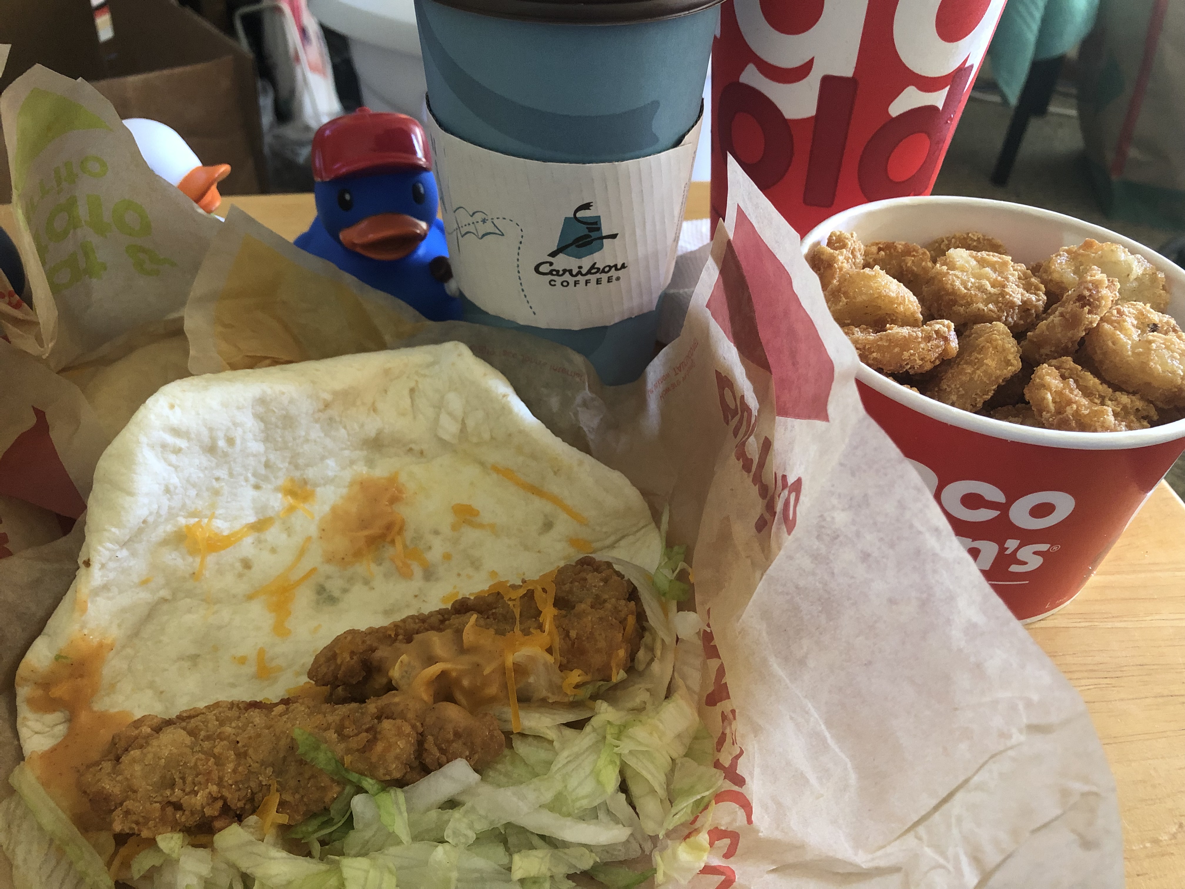 My last meal in Minnesota: Taco Johns and Caribou Coffee. It's like Starbucks but better! FEATURING RUBBER DUCKY!!!